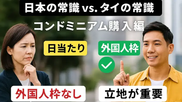 常識の逆転現象日本でマンションを購入する際、多くの人がまず確認するのは「日当たり」「眺望」「静けさ」です。しかし、バンコクで同じ基準を持ち込むと、現地の不動産業者からは「そこは重要ではない」と言われることが少なくありません。タイでは、外国人...