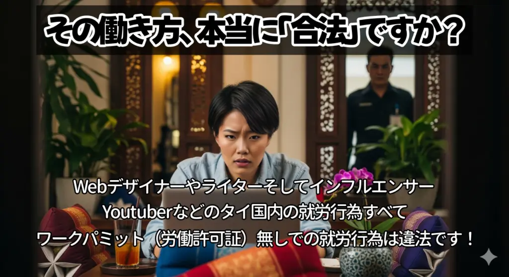 あなたが、タイの国土の上で、自分の肉体や知識というリソースを使って「何か」をした瞬間、ワークパーミットがなければ「不法就労者」の完成です。